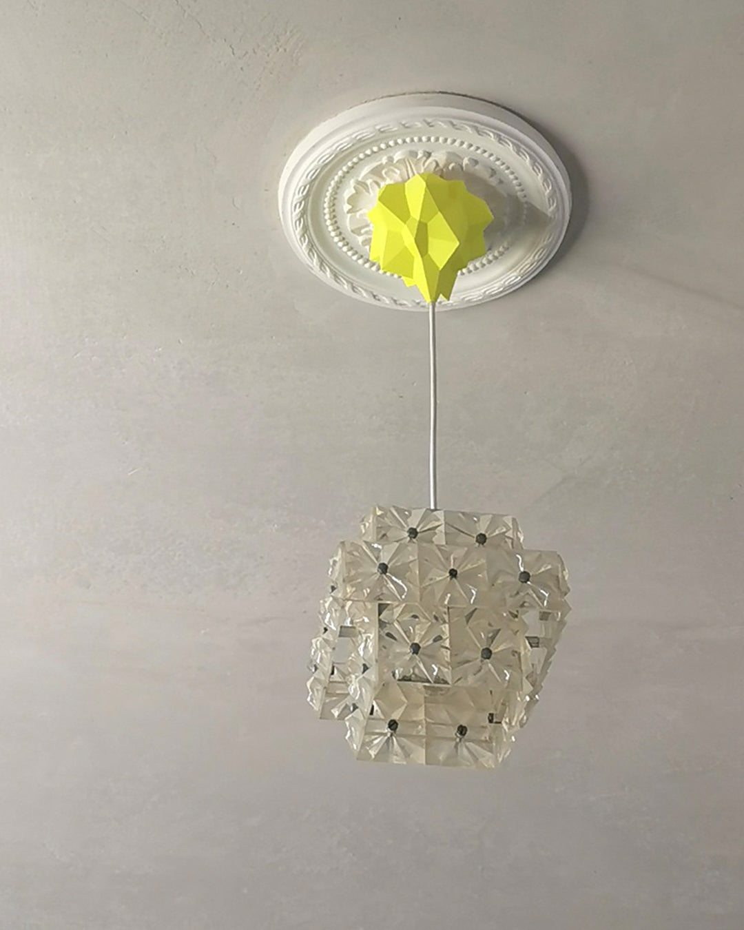 Der erste canopie®-Prototyp war diese wilde Mischung: Eine Stuckrosette aus dem Baumarkt – vom Vormieter hinterlassen, eine Leuchte vom Flohmarkt – ein DDR-Relikt aus Acrylglas.